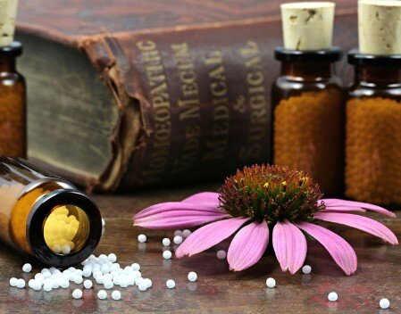 Método curativo de algunas enfermedades que se fundamenta en la aplicación de pequeñas cantidades de sustancias que, si se aplicaran en grandes proporciones a un individuo sano, producirían los mismos síntomas que se pretenden combatir.