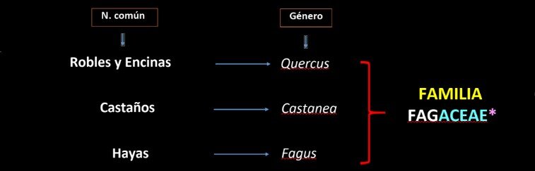 Las Especies con relaciones de parentesco cercanas las agrupamos en Géneros y el conjunto de géneros evolutivamente relacionados los reunimos en Familias.