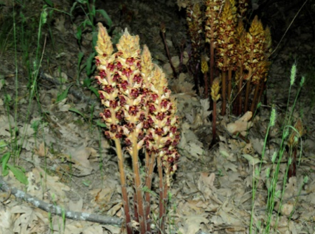 Las Orobanche son plantas parásitas. No presentan clorofila y no hacen la fotosíntesis.