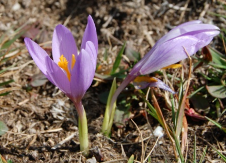 Crocus no tiene tallos, y sus hojas y flores nacen a partir de un bulbo subterráneo.