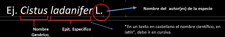 En el reino vegetal las Especies se denominan con un Nombre Científico, seguido del nombre del autor que la describió y publicó de forma válida por primera vez, o por la abreviatura establecida para el autor(es), si existe.