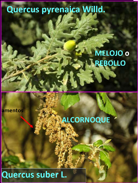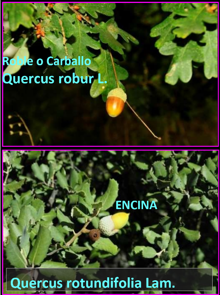 Las especies del género Quercus tienen flores en amentos y frutos en bellota.
