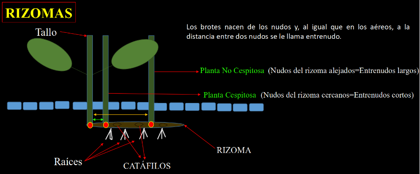 ESTOLONES : son renuevos que nacen en la cepa y se pegan al suelo. Pueden enraizar en los nudos generando nuevos individuos cuando muere el fragmento que los unía (entrenudos).